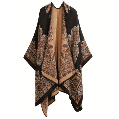 プラスサイズの民族パターンのシャールトップ、ヴィンテージの暖かいオープンフロントカバーアップ冬&秋、女性のプラスサイズの衣類のためのトップ