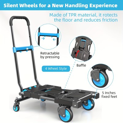 重型折りたたみの手トラック - 330LB容量、引き出すハンドル、家のためのすべての地形の車輪を持つ折りたみの折りたみのドリ、倉庫